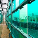 A hearing aid device is very sophisticated product. Very different from old trumpets, it incorporates a customized chip adapted to each user. Production use microscopes in a white laboratory-like spaces and generates no waste: the type of industry that could be perfectly integrated into the city. The building conceptually and formally responds to these conditions of high sophistication, precision and cutting edge technology integrated into the architecture in terms of sustainability and energy efficiency. The facade is a living skin of mobile sunscreen glass louvers domotically controlled by a central system associated to weather. It is analogous to a sunglasses solar clip that dynamically protects from sun.