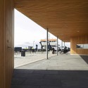 The concept is based on the idea of travelling, which is about expectations and waiting. The terminal consists of a simple core containing all serving functions. This core is surrounded with a layer of waiting spaces, weather protected areas on the quay for people to dwell, indoors and outdoors. This is reflected in the materiality concept, whereas the building volume is clad with sheets of galvanized steel that withstands the harsh conditions on the dock. Spaces for human interaction and contact are then carved into the metal body exposing warm, welcoming and protected places for waiting and arrival.